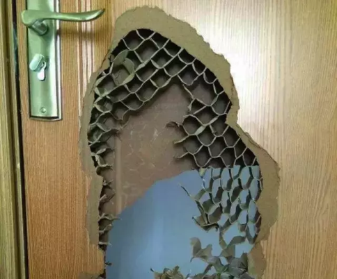 模壓門用不到很久就會爆皮,況且抗沖擊性真的弱到令人發指,設想一下,門芯是空的,能經得住啥子撞擊?電視劇里破門而入的情景,道具大約就是它吧!