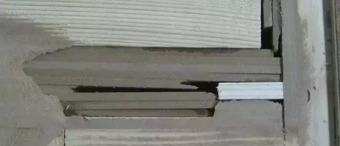 有類商家偷工減料,會擴大伸縮縫裂縫的寬度,減小木料用量(如下圖)。