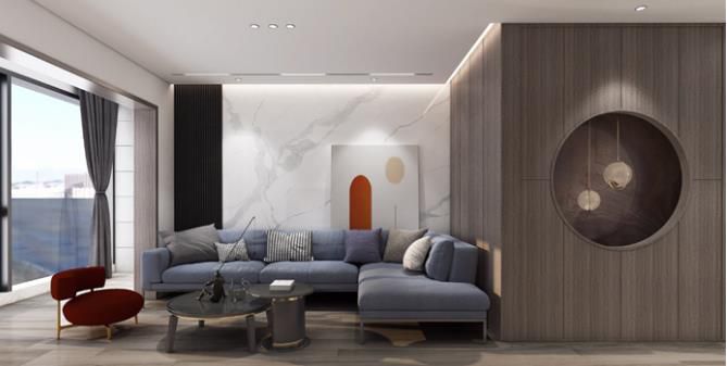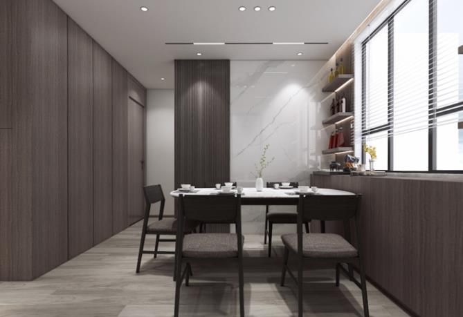 儲物餐邊柜,木飾面加大規(guī)格巖板背景,實現(xiàn)裝修內(nèi)容主次分明,有詳有簡。