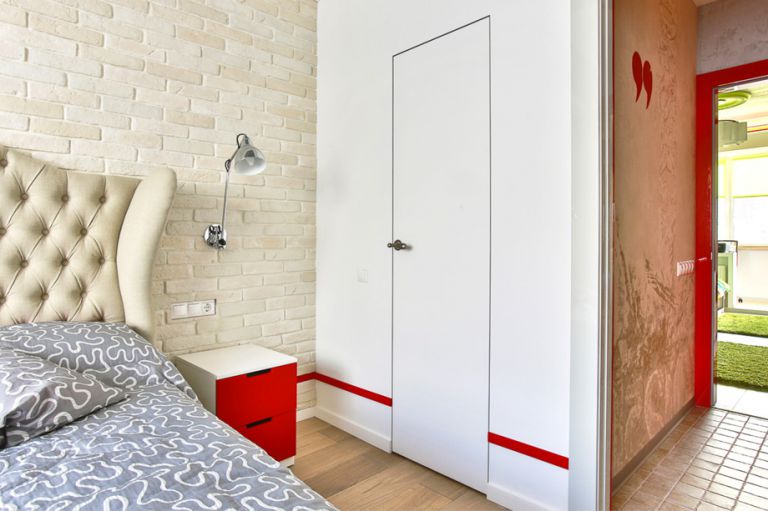 房間內的隱藏門用于不顯眼的分區,無需在表面加載配件和門框。這種技術對于空間已經很小的小房間很重要。對兒童房也有好處,可以防止玩耍過動的孩子撞到門把手。
